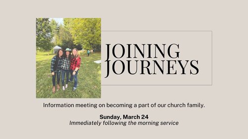 Joining Journeys: If you consider this church family your home church but haven’t yet made it official, you're invited to an upcoming information meeting on Sunday, March 24, right after the morning service. Pastor Chris would love to share with you the journey our church is on and what membership means, as well as answer any questions you might have.