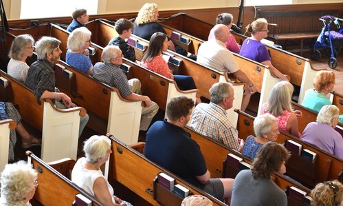 Under the tent on the Etna Baptist Church lawn