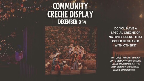 Bring your family, and neighbors. Come to the sanctuary to experience some quiet contemplation while viewing the various artists' renditions of the birth of Christ. Members of our church family will be there to greet you, while soft music fills the room, at these times only: