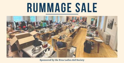 The Spring Etna Ladies Aid Rummage Sale will be held in Trumbull Hall, Etna, on Friday, May 2, from noon to 6:00 pm and on Saturday, May 3, from 9:00 am to 1:00 pm. $5 a bag after 11:00 am on Saturday.
