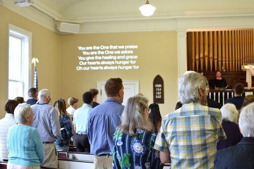 Under the tent on the Etna Baptist Church lawn